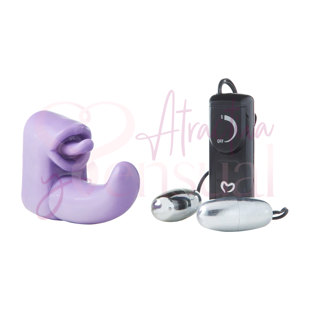 ¡Es un viaje al pasado! G-Wiz es un clásico de nuestra colección, una combinación de funda y vibrador que te encantará enseguida. El eje moldeado estimula el interior mientras que el estimulador con forma de lengua añade juego con el cl-toris a la mezcla. Para disfrutar, toma tu lubricante a base de agua favorito y agrega las dos balas en la base del juguete para duplicar la potencia y la diversión. O, si tu pareja se siente juguetona, quita la funda y usen las balas entre sí.