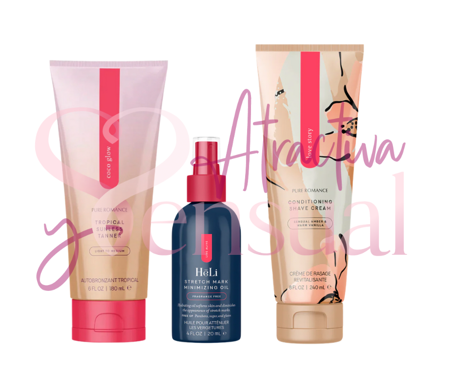 Aceite para estrías: Hidrata profundamente, ayuda a mejorar la apariencia de estrías y deja la piel más firme y lisa.